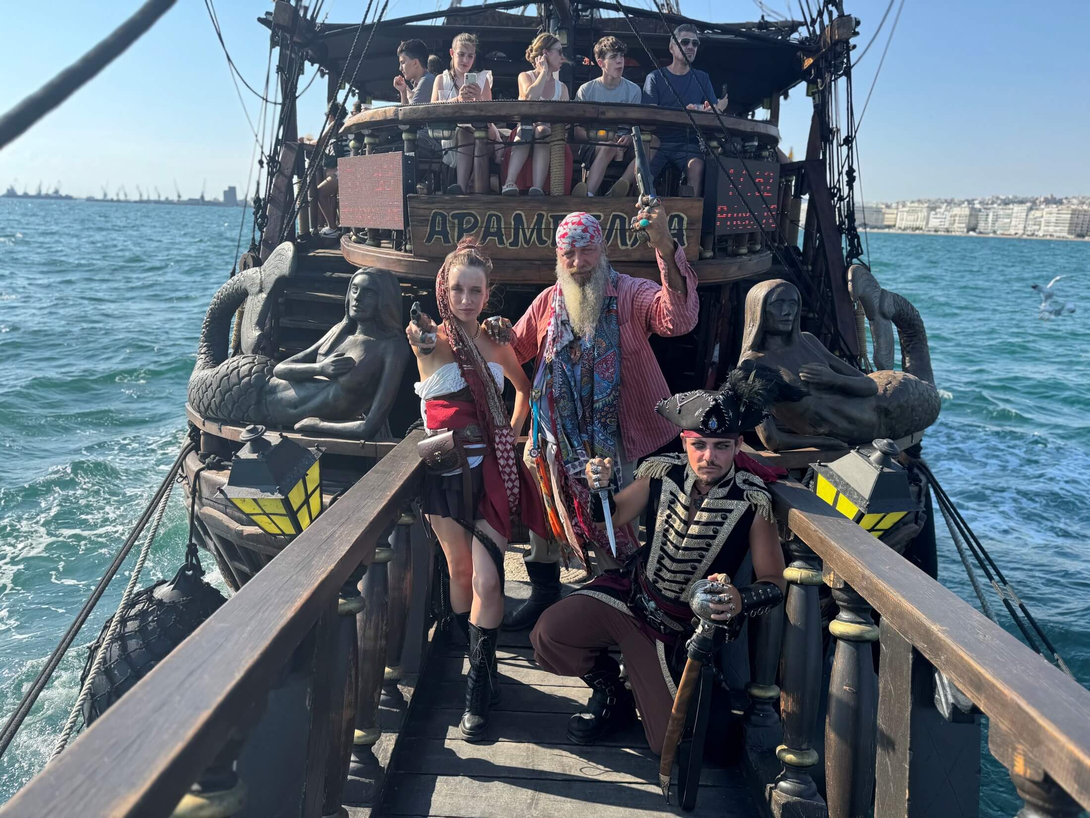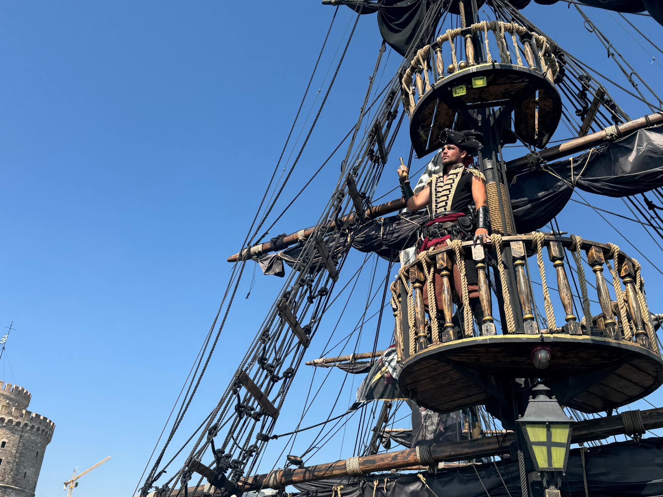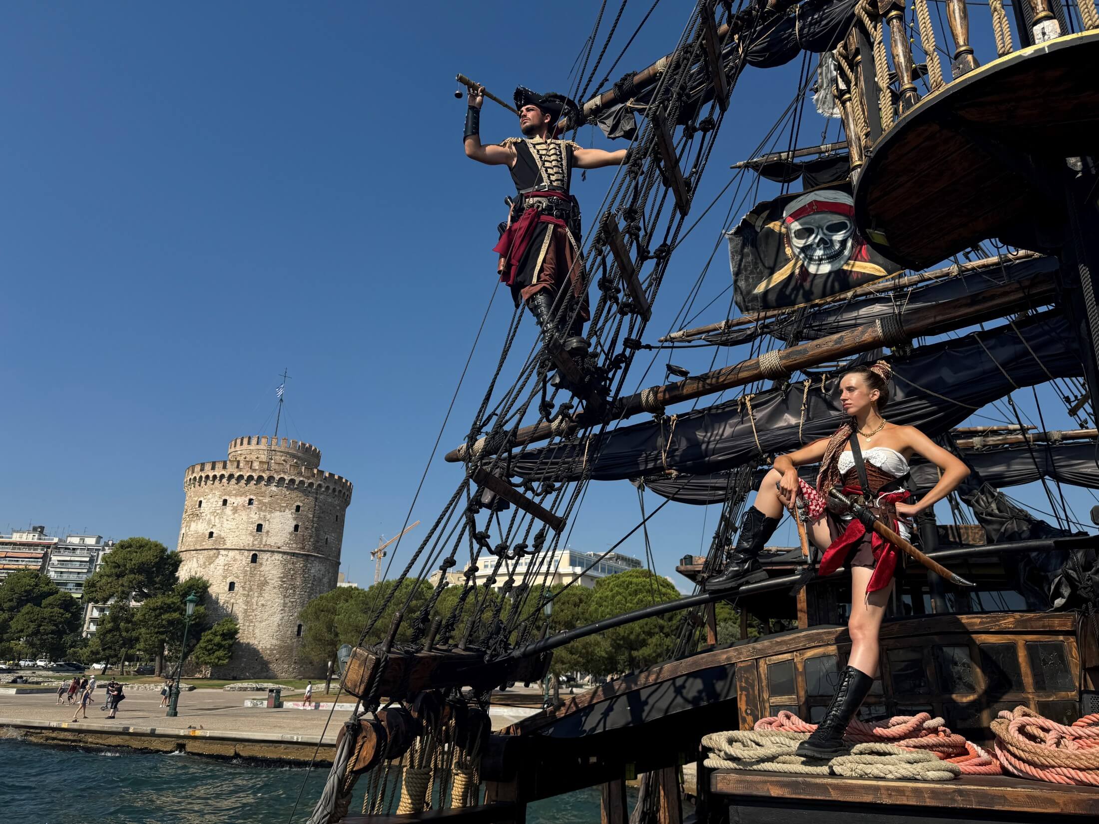 Since 1995, she’s been reborn as Thessaloniki’s one and only pirate ship — carrying stories, laughter, and adventure across the waters she calls home.